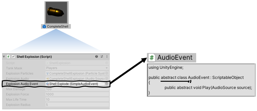 추상 클래스는 다형화를 구현하는 대표적인 수단이다. 사용자인 MonoBehaviour는 인스턴스의 타입이 무엇인지에 상관없이 Play()만 호출할 뿐이다.