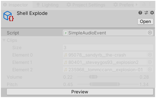 모든 AudioEvent들은 Preview할 수 있다. Editor의 타겟으로 AudioEvent를 명시하자.