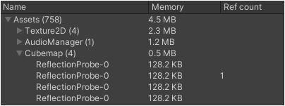 씬을 언로드한 후의 메모리 상태이다. Cubemap은 해당 씬이 참조한 것들이다.