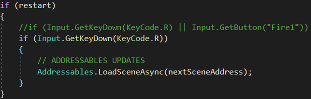 Addressables.LoadSceneAsync(addressSceneKey, LoadSceneMode.Additive).Completed +=