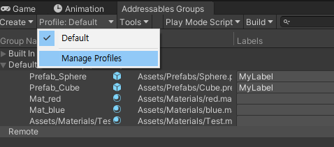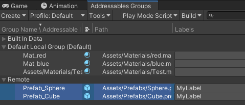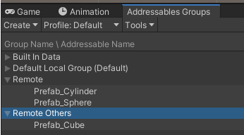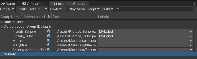 Sphere와 Cube를 Remote 에셋그룹에 옮겨주자.