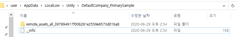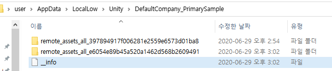 해당 번들파일을 다운받으면 어드레서블은 위 경로(PersistentPath?)에 캐싱해놓는다.