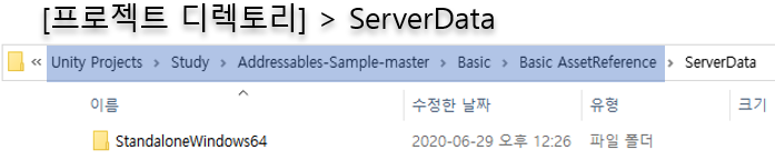 어드레서블을 빌드하면 ServerData 폴더에 카탈로그와 번들파일이 생성된다.
