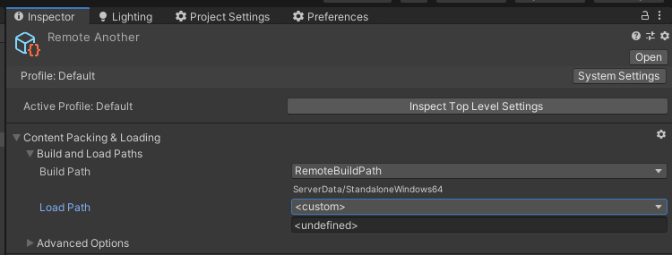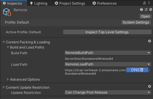 그리고 Remote 에셋그룹의 스키마를 통해 빌드경로와 로드경로를 지정하자.