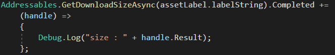 Addressables.GetDownloadSizeAsync(assetLabel.labelString).Completed +=