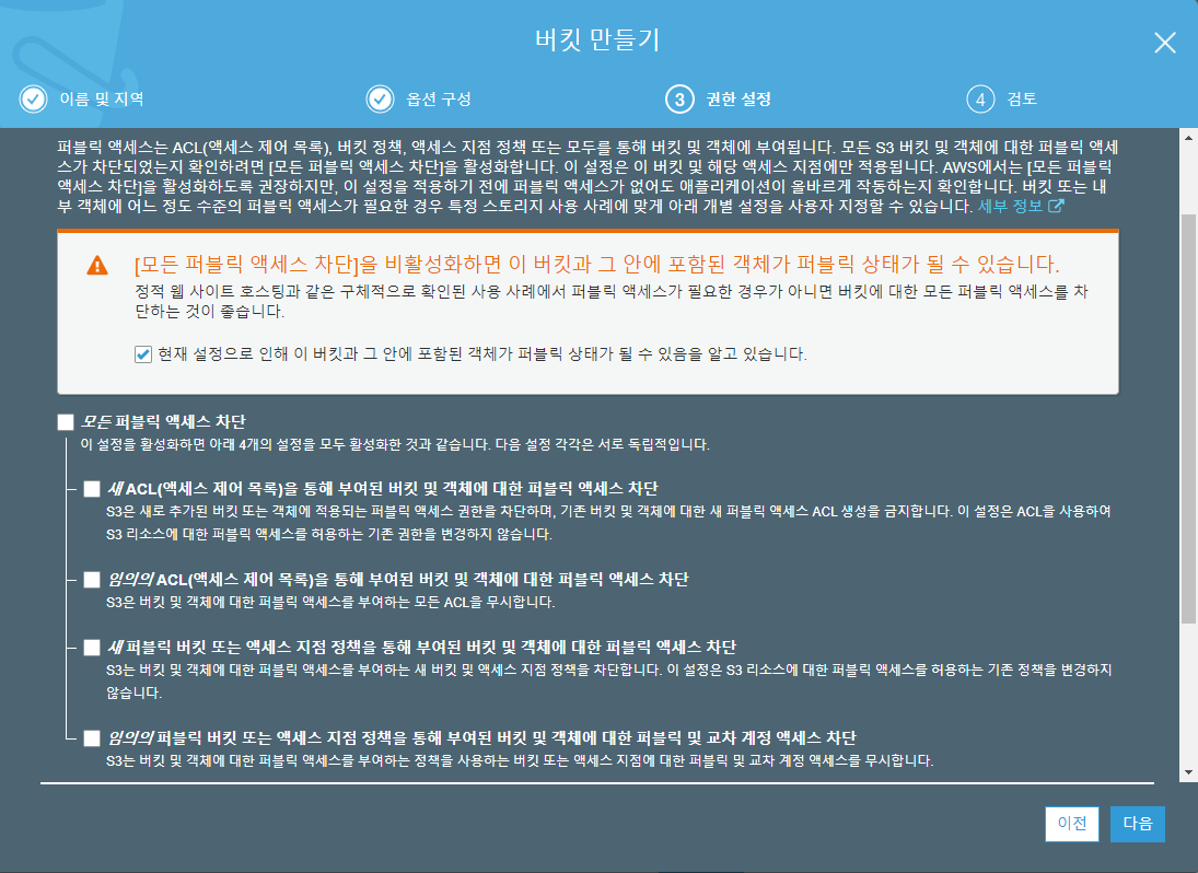 퍼블릭 권한 개별 부여는 번거로울 것 같으니까 그냥 차단 해제해놓자.