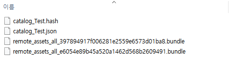 어드레서블을 빌드하면 Catalog가 업데이트되고 번들 파일하나가 새로 생성된다.