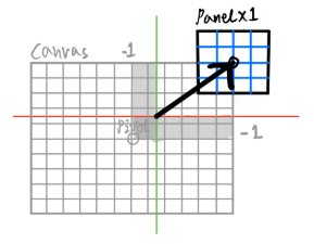 반면 panel의 localPosition은 canvas좌표의 칸의 갯수로 panel의 피벗을 쉽게 알 수 있다. (4.5, 3.5)