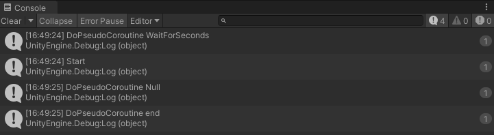 Debug.Log("DoPseudoCoroutine WaitForSeconds");