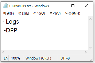 위 디렉토리 리스트를 .txt 파일(FileStream)으로 담아본다.
