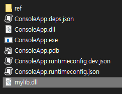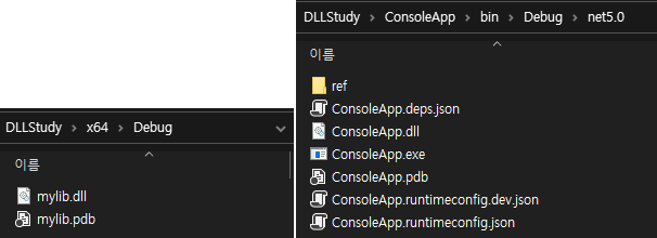 빌드하면 각 프로젝트에서 DLL파일과 exe파일이 출력디렉터리에 생성된다.